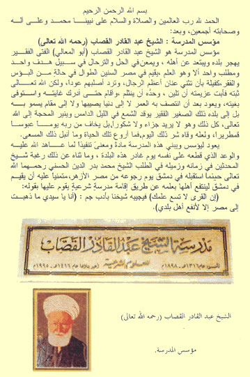 القصر الشريف | مشيخة دار الحديث | الذين تخرّجوا من دار الحديث | أعضاء مجلس الأدارة | الشيخ عبد القادر القصّاب | المدرسة التي أسّسها | الخاتمة